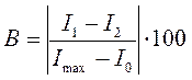 где I1 и I2 – действительные значения выходного сигнала соответственно при прямом и обратном ходе, мА. Вариация выходного сигнала в % от нормирующего значения вычисляют по формуле: