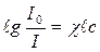 С – мольная концентрация взвешенных частиц, моль/м3 Теоретически процесс поглощения был выведен Ламбертом, а для растворов исследован Бером. Для растворов было получено следующие соотношение: I = I0 ´ 10 – c lC