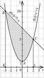 Відповідь : . cosϕ 32. Задано функції f x ( ) = x 2 +1 і g x ( ) = 7 − x . 1. Знайдіть абсциси точок перетину графіків функцій f x ( ) і g x ( ) . У прямокутній системі координат зобразіть фігуру, обмежену цими графіками. 2. Обчисліть площу фігури, обмеженої графіками функцій f x ( ) і g x ( ) .