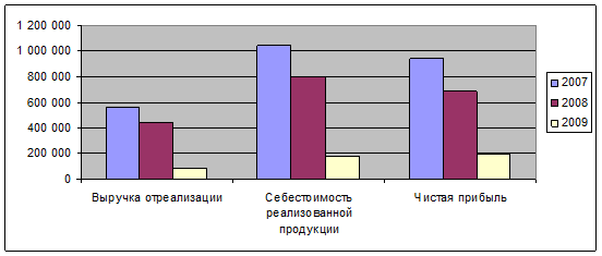 Рисунок 2.1 - Динамика экономического потенциала ООО «НЗЖБИ-НК» за период 2007-2009 гг. Чистая прибыль также претерпела значительные изменения, увеличившись с 84 780 тыс. руб. до 194 829 тыс. руб., то есть предприятие является прибыльным. Среднегодовая стоимость основных средств в 2009 году увеличилась на 7 792 тыс. руб. или темп прироста составил 160,36%, и составила 12 651 тыс. руб. Среднегодовая стоимость оборотных средств или часть средств, вложенная в текущие активы, уменьшилось, по сравнению с предыдущим годом, на 60 591 тыс. руб. или на 16,24% и составила 312 294 тыс. руб. В отчетном 2007 году произошло уменьшение коэффициента оборачиваемости оборотных средств на 8 оборотов или на 6,43% - со 130 до 121,63 оборота, что свидетельствует о менее эффективном использовании оборотных средств в производстве. Среднесписочная численность работников увеличилась на 21 человек и составила 307 человек. Производительность труда или эффективность труда в процессе производства уменьшилось на 16,53%, что является отрицательной тенденцией. Среднемесячная заработная плата уменьшилось на 12,99% и составила на конец 2009 года 14 804 тыс. руб. Для анализа и оценки уровня и динамики показателей финансовых результатов деятельности предприятия составим таблицы 2.2, 2.3 и 2.4, в которых используются данные отчетности предприятия из формы №2. Таблица 2.2 - Анализ динамики финансовых результатов ООО «НЗЖБИ-НК» за 2007-2009 гг.