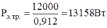 где hобщ =h1 ×h2 ×h3 … (h1 , h2, h3 – КПД отдельных звеньев кинематической цепи) Определим общее КПД цепи. Из таблицы 1.1. методических указаний определим КПД отдельных звеньев кинематической цепи. - КПД ременной передачи примем h1 =0,95 - КПД конической передачи примем h2 =0,96 Общее КПД передачи будет равно: hобщ =h1 ×h2 =0,95×0,96=0,912 Мощность электродвигателя будет равна: