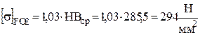 Так как N ³ NHO то KHL = 1,0 Коэффициент долговечности при расчете на изгиб для всех вариантов термообработки KFL = 1,0; так как для всех случаев N > 4×106 . 2.2. Определение допускаемых напряжений. 2.2.1. Допускаемое контактное и изгибающее напряжение напряжение. – колесо: