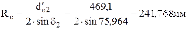 2. Угол делительных конусов колеса и шестерни (2.34): d2 =arctgu =arctg4 =75,964°; sind2 = cosd1 =0,97; d1 =90° -d2 =90° -75,964°= 14,036°. Конусное расстояние (2.35)