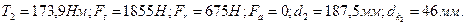 Значения сил в зацеплении колес (при a w = a = 20°)