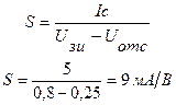 По ВАХ определяем Uотс = 0,25 В. Для расчета крутизны S выбираем точку на прямой, аппроксимирующей ВАХ, Uзи = 0,8 В, Ic = 5 мА, тогда