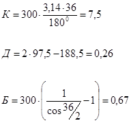 Домер Д определяется по формуле Д = 2Т – К , (12) Биссектриса кривой Б, м, рассчитывается по формуле