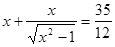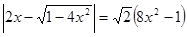 Подставив эти значения в исходное уравнение, получаем, что Решая аналогично уравнение второй системы исходной совокупности, находим, что Ответ: Если в предыдущем примере алгебраическое решение и решение с помощью тригонометрической подстановки были равноценны, то в данном случае решение подстановкой выгоднее. При решении уравнения средствами алгебры приходится решать совокупность из двух уравнений, то есть дважды возводить в квадрат. После этого неравносильного преобразования получаются два уравнения четвертой степени с иррациональными коэффициентами, избавиться от которых помогает замена. Еще одна трудность – проверка найденных решений подстановкой в исходное уравнение. Пример 3 . Решите уравнение