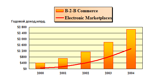 Рис. 2.1. Динаміка річного обсягу B2B електронної комерції і електронних торгових майданчиків (джерело: Forrester Research). 3. Індустрія інтелектуальних систем