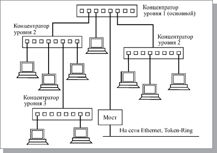 Таким образом, топология сети Arcnet имеет следующий вид.