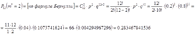 Задание 4. Шахматист завершает вничью в среднем 20% своих партий. Определить наивероятнейшее число ничьих, которые сделает шахматист в турнире, где сыграет 12 партий. Решение.