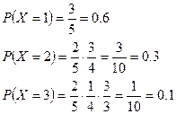 Контрольная работа №2. Вариант 8. Задание 1. В урне 3 черных и 2 белых шара. Производится последовательное без возвращения извлечение шаров до появления черного. Составить закон распределения случайной величины Решение. Случайная величина