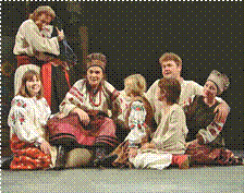 Сцена з вистави І. Нечуя'Левицького «Кайдашева сім’я» у постановці Київського національного драматичного театру ім. І. Франка • добра і зла; • кохання; • сімейних стосунків; • взаємин батьків і дітей; • людської гідності та свободи; • віри в Бога й моралі. Духовна роз’єднаність — це те лихо, що отруює кожен день життя і батьків, і їхніх синів, і невісток. Реалістичності твору додає те, що окре' мі персонажі мали прототипів. Наприклад, прототипами Кайдашів була сім’я Мазурів із села Семигори, яка була відома на весь повіт постійними сварками, бійками й ко' лотнечами. Мазури мали й реальних бага' тих сватів — Довбушів.