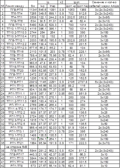 Результаты расчета нагрузки для остальных цехов сведены в таблицу 2 и таблицу 3 (для потребителя 6кВ). Таблица № 2 (0,4 кВт)
