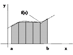 Рис. 1.1. На практике, однако, это может привести к существенным затруднениям, если формула F(x) имеет сложный вид. Указанный способ может оказаться и вовсе непригодным, если не удается получить формулу для неопределенного интеграла. В таких случаях широко применяются различные методы численного интегрирования. Из курса высшей математики, интеграл с заданными пределами a и b от функции f(x) численно равен площади криволинейной трапеции. Определить величину этой площади можно несколькими способами:
