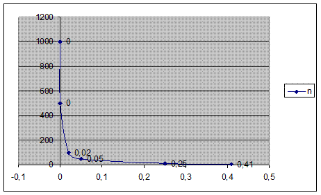 Составим график зависимости величины погрешности от количества взятых интервалов для f1: