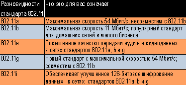 Рис 2. Разновидности стандартов В развитии беспроводной связи сегодня наблюдается настоящий бум. На этот рынок, традиционно занимаемый производителями радиоустройств, ринулись все, кто выпускает сетевое оборудование. Но поскольку задачи у них разные, то и рыночные ниши делят сообразно с поставленными перед собой целями. Каждый тип оборудования работает в соответствии с определенными стандартами. В настоящее время наиболее распространены стандарты серии IEEE 802.11, а также 802.15 и 802.16, Bluetooth, HomeRF. — Какие компании являются основными производителями радиосетевых устройств (в мире и в России)? — Условно всех производителей можно разделить на три группы: Выпускающие высокопроизводительное, высокоскоростное и достаточно дорогостоящее оборудование (например, для широкополосного беспроводного доступа). Это Alcatel, Alvarion, Avaya, Cambridge Broadband, Cisco Systems, CompTek (Россия), InnoWave, RadWin, Wi-lan и др. Производители оборудования для локальных сетей (самый массовый рынок), предлагающие в основном устройства, соответствующие стандарту 802.11. Наиболее известны: Agere System (продукт Orinoco), Alvarion, Avaya Communication, Cisco Systems, Compaq Computer, D-Link, Lucent Technologies, Proxim, 3Com и др. Производители оборудования «последнего метра» для подключения периферийных устройств (КПК, принтеров, ноутбуков и т.п.) к локальной сети на базе технологий Bluetooth, 802.11b, 802.15, HomeRF. Характерные представители: 3Com, Agere System, Ericsson, IBM, Intel, Nokia, Toshiba и др. — Каковы критерии при выборе услуг беспроводного доступа? — Услуги при предоставлении беспроводного доступа выбирают, руководствуясь несколькими критериями: По скорости передачи информации. Реально существующее оборудование, работающее в диапазонах от единиц до десятков гигагерц, позволяет передавать трафик со скоростью от одного до десятков мегабайт в секунду. По качеству предоставляемых услуг. Прежде всего имеется в виду гарантированная скорость в радиоканале (аналог CIR/MIR во Frame Relay), а также поддержка ToS (Type of Service — тип сервиса) и QoS (Quality of Service — качество и класс предоставляемых услуг передачи данных1). В первую очередь это относится к передаче видео и голосовых пакетов по IP (VoIP). По радиусу действия. Разные системы позволяют передавать данные на расстояние от нескольких метров до десятков километров. По количеству одновременно обслуживаемых абонентов — от десятков пользователей офисной базовой станции до нескольких сот или даже тысяч клиентов, приходящихся на базовую станцию серьезного оператора. По комбинации вышеперечисленных параметров и другим критериям. — Какова сфера применения радиосетевых устройств? — Они используются при построении сетей — корпоративных, операторских, локальных и домашних. — Какова распространенность беспроводных систем в мире? — Весь мир пользуется достижениями современных технологий в области передачи данных по радио. Прежде всего это относится к США и Канаде, которые одними из первых начали применять их сперва для военных, а затем и для гражданских целей. Следом идет Европа, где уже развернуто довольно много сетей (например, Tele2, British Telecom, Nextra Wireless, Star 21 Networks). В последнее время рывок сделал Китай. В России распространение беспроводного оборудования сдерживается обязательной разрешительной регистрацией, но тем не менее рынок стремительно растет. — Каковы частотные диапазоны и принципы передачи? — Наиболее популярные стандарты и технологии м