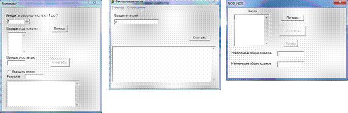 2. Numerator 3. Factorizator 4. NOD_NOK