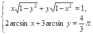 а из уравнения следует тригонометрическое уравнение вида Сделаем еще одну замену переменных, пусть Из уравнений системы составим квадратное уравнение относительно Ответ: