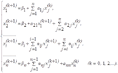 учитываются уже вычисленные ранее (k+1)-е приближения x1,