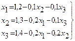 . Пусть дана приведенная линейная система Обычно процесс Зейделя сходится быстрее, чем метод простой итерации. Бывает, что процесс Зейделя сходится, когда простая итерация расходится и т.п. Правда, бывает и наоборот. Во всяком случае, достаточные условия сходимости для метода простой итерации достаточны и для сходимости метода Зейделя. То есть процесс итерации сходится, если выполнено одно из условий 1) Пример. Методом Зейделя решить систему уравнений Решение. Приведем эту систему к виду, удобному для итерации, В качестве нулевых приближений корней возьмем: Применяя процесс Зейделя, последовательно получим:
