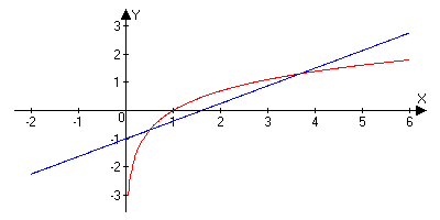 образуют ограниченную монотонно возрастающую последовательность, причем x0 <x1 <x2 <…<xn <xn+1 <…<ξ<b. Таким образом, для вычисления корня уравнения имеем две различные вычислительные формулы. За неподвижный конец выбираем тот конец, для которого знак функции f(x) совпадает со знаком второй производной f''(x). Пример. Найти положительный корень уравнения Решение. Прежде всего отделяем корень. Так как