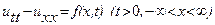 уравнения колебания струны и уравнения теплопроводности. Рассмотрим процесс колебания тонкой бесконечной струны под действием непрерывно распределенной внешней силы с плотностью f. Предположим, что сила действует в одной плоскости – плоскости колебания струны (x, u), а струна является гибкой упругой нитью. Пусть величина натяжения, возникающая в струне вследствие ее изгиба, подчиняется закону Гука, а сами колебания достаточно малы. Тогда величина смещения u (x, t) удовлетворяет уравнению колебания струны: Исследуем теперь процесс распределения температуры в тонком бесконечном стержне. Предполагается, что тепловой поток подчиняется закону Фурье, а изменение температуры тела пропорционально количеству теплоты, сообщаемой телу. Предположим, что внутри стержня может выделяться и поглощаться теплота, характеризуемая плотностью тепловых источников f. Тогда распределение температуры в стержне описывается уравнением теплопроводности: