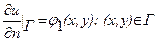 режим распределения температуры в ограниченной тонкой пластине произвольной формы с гладкой границей. Пусть функция u(x, y) выражает температуру каждой точки пластины. При обычных законах распространения тепла функция u(x, y) удовлетворяет уравнению Пуассона: В зависимости от теплового режима на границе получаются три граничных условия для функции u(x, y). Пусть Г – граница рассматриваемой области в – определения уравнения Лапласа. Математическая формулировка граничных условий может быть задана в следующем виде: граничное условие Iрода: граничное условие IIрода: граничное условие IIIрода: Производная берется по внешней нормали к кривой Г; λ>0 – коэффициент теплопроводности; φ0 , φ1 , φ2 – заданные на Г функции, причем φ2 есть произведение коэффициента теплопроводности на температуру внешней среды, соприкасающейся с телом. Таким образом, краевая задача заключается в том, чтобы найти классическое решение уравнения Пуассона или Лапласа, удовлетворяющее одному из граничных условий.
