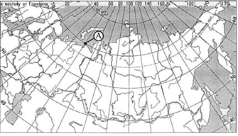 Определите, в каком из пунктов, обозначенных буквами на карте России, 1 мая Солнце раньше (по времени Гринвичского меридиана) поднимется над горизонтом. Запишите обоснование вашего ответа. (2012 - 19 / 26) Система оценивания экзаменационной работы по географии Часть 1