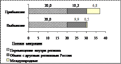 Ответ: Используя данные диаграммы, определите величину миграционного прироста населения Нижегородской области в 2008 г. Ответ запишите цифрами. Распределение числа мигрантов по основным потокам передвижения, 2008 г. (тыс. человек)