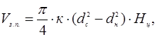 Часть № 3. Разработка режима цементирования скважины При разработке режима цементирования определяют: — объем затрубного пространства, подлежащего цементированию; — объем потребного количества тампонажной жидкости (цементного раствора); — удельный вес тампонажной жидкости; — количество составных компонентов для приготовления потребного объема тампонажной жидкости; — объем продавочной жидкости; — давление на цементировочной головке в конце продавки смеси и тип цементировочного агрегата; — время цементирования и количество цементировочных агрегатов. Объем затрубного пространства Vз.п. определяется в соответствии со схемой, изображенной на рис. 1.