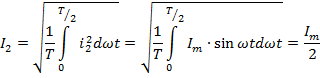 Так как ток во вторичной обмотке трансформатора в мостовой схеме изменяется в течение периода по синусоидальному закону, его действующее значение: