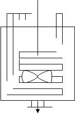 Рис. 8. Реактора со встроенным змеевиковым теплообменником Продукт Механическое перемешивание (наиболее распространенное в промышленности) осуществляется при помощи мешалок различного типа. Каждая мешалка представляет собой ту или иную комбинацию лопастей, насажанных на вал. Различают следующие типы мешалок: · лопастные · пропеллерные · турбинные · специальные Лопастные мешалки разделяются на: 1. собственно лопастные (для высоковязких сред) 2. листовые (для маловязких сред) 3. рамные 4. якорные (для высоковязких, способных налипать, сред) 5. Z– образные (применяются в резиновой промышленности для перемешивания клеев). Пропеллерные мешалки в качестве рабочего органа имеют устройство, напоминающее гребной винт, лопасти которого укреплены на втулке, насажанной на вал. Диаметр лопастей dне должен превышать 0,2 – 0,33 диаметра корпуса D. Окружная скорость вращения до 15 м/с. Пропеллерные мешалки применяются для создания эмульсий, тонких суспензий и аэрозолей путем диспергирования газа в диспер