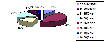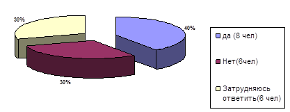 Анализ исследования В социологическом исследовании на вопросы Владимирского Техникума Туризма (ВТТ) большинство отвечали женщины ( 12 чел. – 60%) и 8 мужчин ( 40%), в основном отвечали студенты от 16 – до 20 лет( 9 чел. -45%), до 15 лет – 2 чел.(10%), 21- до 25 лет (3 чел.-15%), 26- до 30 лет (4 чел.- 20%), 31- до 35 лет (1 человек), 51- до 55 лет ( 1 чел.-5%). На вопросы отвечали большинство жителей города Владимира – 11 человек( 55%), Село – 1 человек(5%), Поселок – 2 человека( 10%), Деревня – 1 чел. ( 5%), и из города Владимирской области – 5 человек (25%). С незаконченным средним образованием ответили 2 человека (10%), 5 человек (25%) – со средне – профессиональным образованием, 6 человек (30%) – с незаконченным высшим образованием, и 7 человек (35%) имеют высшее образование. При проведении данного исследования выяснилось, что большинство респондентов при ответе на первый вопрос ответило, что часто посещают Патриаршие сады ( 65%), 20% респондентов ответило, что редко посещают данный объект, и только 15% ответило, что в первый раз. На второй вопрос большинство ответило, что посещают данный объект, летом( 55%), осенью (20%), зимой (5 %) и весной (20%). На третий вопрос, с какой целью Вы посещаете данный объект, большинство опрашиваемых ответило, что посещают с целью отдыха ( 50%), с целью экскурсии (25%), с целью практики (10%), по торжественным мероприятиям (5 %) и только 10% ответили, затрудняюсь ответить. На вопрос с кем вы отдыхаете в данном парке, только 4 человека( 20%) ответили, что с друзьями, 15% с семьей и 15% отдыхают со второй половинкой. На вопрос №5 Разработаны ли сотрудниками парка какие-нибудь предложения по отдыху , 8 человек( 40%) ответили "да", 6 чел.( 30%) ответили что нет, и так же 6 чел.( 30%) затруднились ответить. На вопрос под № 6 (имеются ли платные услуги на территории садов) 85% ответило, что такие услуги есть. По результатам было выявлено, что 50% посетителей парка считают, что платные услуги доступны и 40% считают, что не доступны. При ответе на вопрос: Как вы оцениваете работу коллектива Патриарших садов? Большинство сказали что удовлетворительно (45%), и ( 40% ) ответили , что хорошо, (5%) оценивают работу на отлично, и лишь (10%) считают, что работа не удовлетворительна. На вопрос № 9 , устраивает ли Вас режим работы Патриарших садов, 50% - ответило что да, устраивает, 40% ответило, что не устраивает, и только 10% затруднилось ответить на данный вопрос. По вопросам 10, 11, 12 было выяснено, что на территории не имеется предприятие по питанию, и нет развлекательных программ, в ответе на 12 вопрос большинство респондентов предложило открыть предприятие питания (25%), разработать развлекательные программы ( 20%), снизить цену на платные услуги ( 15%), улучшить работу коллектива ( 10%), и 6 человек (30%) респондентов, все устраивает в данном парке. Вывод и рекомендации По результатам проведенного анализа было выяснено, что, по мнению респондентов, что на территории для полного развития Патриарших садов, как экологического центра г.Владимира, не хватает предприятий по питанию, разработать развлекательные программы по отдыху, ведь если на территории предприятия например, сделать катание на лошадях, кормление лошадей, разведение кроликов, ведь жители и гости города Владимира, захотят более часто посещать данный объект. Так , же респонденты предлагают снизить цены на платные услуги, сумма входа на территорию Патриарших садов на 1 человека составляет – 50 рублей, можно с