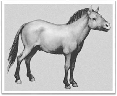 евальского (Рис. 7). Ее обнаружил в 1879 году русский ученый Н.М. Пржевальский в Азии (пустыня Гоби). В настоящее время встречается в Монголии. Эта лошадь имеет низкий рост (120-130 см), короткое туловище, грубую голову без челки, с короткими ушами, ноги тонкие с каштанами. Жеребость составляет 340-350 дней. Лошадь Пржевальского скрещивается с домашней лошадью, гибриды плодовиты.