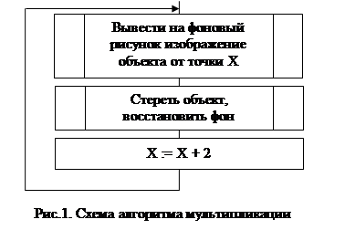 ОГЛАВЛЕНИЕ РАЗРАБОТКА ЭСКИЗНОГО И ТЕХНИЧЕСКОГО ПРОЕКТОВ ПРОГРАММЫ 1.Введение 2. Назначение и область применения 3.Технические характеристики 3.1 Постановка задачи 3.2. Описание алгоритма 3.3. Организация входных и выходных данных 3.4. Выбор состава технических и программных средств РАЗРАБОТКА РАБОЧЕГО ПРОЕКТА 1. Разработка программы 2. Спецификация программы 3. Текст программы 4. Описание программы 4.1. Общие сведения 4.2. Функциональное назначение 4.3. Описание логической структуры 4.4. Используемые технические средства 4.5. Вызов и загрузка 4.6. Входные данные 4.7. Выходные данные 5. Тестирование программы ВНЕДРЕНИЕ 1. Условия выполнения программы 2. Выполнение программы 3. Сообщение оператору ЗАКЛЮЧЕНИЕ ГЛОССАРИЙ ЛИТЕРАТУРА ПРИЛОЖЕНИЯ РАЗРАБОТКА ЭСКИЗНОГО И ТЕХНИЧЕСКОГО ПРОЕКТОВ ПРОГРАММЫ 1 Введение Задание на курсовую работу по дисциплине «Алгоритмические языки и программирование» Студент группы ОИн-609 Минкин Владимир Валерьевич Направление: «Информатика и ВТ», № контракта 09400060602052 Тема: Разработка приложения для Windows, представляющего собой компьютерную игру «Сбей самолет». Условие задачи: Игра «Сбей самолет» заключается в том, что по экрану летят вражеские самолеты, цель играющего – сбить их. Пусковая установка находится в нижней строке экрана. Пусковую установку можно перемещать по строке вперед и назад. Задание выдано: 10 сентябрь 2007 ___________________________. 2 Назначение и область применения В данном задании необходимо разработать развлекательную программу, представляющую собой игру. Область применения: досуг программиста. Поскольку ставится задача разработать приложение для Windows, то использоваться программа может только под управлением Windows 9х - Vista. 3 Технические характеристики 3.1 Постановка задачи Программа «Сбей самолет» представляет собой игру, цель которой – уничтожить самолеты противника. В начале игры в окне программы отображается несколько объектов: летящие самолеты и пусковая установка (см. Приложение 1). Игрок, нажав пробел, может запустить ракету, которая, если момент запуска выбран правильно, собьет самолет (см. Приложение 2). Так же с помощью клавиш перемещения курсора игрок может сместить пусковую установку влево или вправо. В условии задачи игры «Сбей самолет» нужно применить мультипликацию для рисования самолетиков на фоне неба, рисования пушки и ракеты. А так же генератор случайных чисел для случайной высоты полета. Надо посчитать количество сбитых самолетов. 3.2 Описание алгоритма В программе решается одна независимая подзадача: Мультипликация. Задача «Мультипликация» решается в три этапа: 1) вывод изображения на поверхности фона; 2) стирание изображения, восстановление фона; 3) изменение координат изображения на несколько точек, в зависимости от выводимого объекта. Схема алгоритма, изображающего мультипликацию, представлена на рис.1.