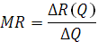 где AR – средний доход, R(Q) – общий доход, Q– количество проданных единиц. Предельный доход – это приращение валового дохода, полученное в результате производства и реализации дополнительной единицы продукции. (1.3)