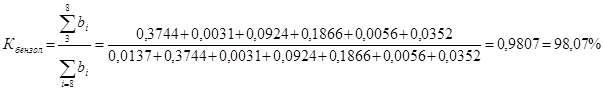 , выход продуктов на пропущенный бензол рассчитывается по формуле: