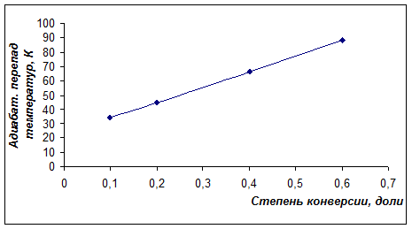 Графическая зависимость перепада температур на входе и выходе от степени конверсии представлена на рисунке 3.