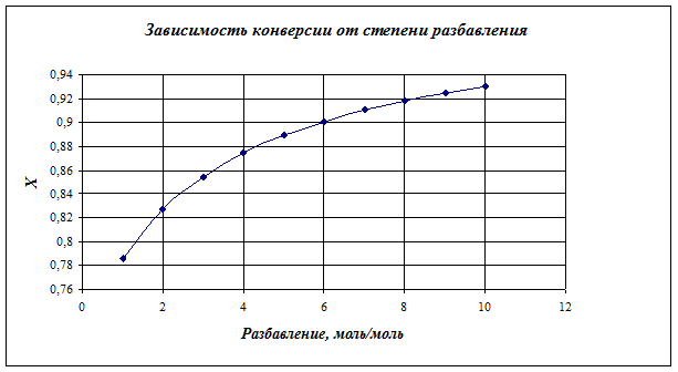 Определим степень конверсии при различных температурах Х = (-Кр*n + Kp^2*n^2+4*(Kp+Pобщ) *(n+1) *Kp) /(2*Kp+Pобщ) где n – кол-во молей инертного разбавителя Pобщ – общее давление