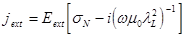 Тут sN - провідність, яка забеспечується носіями заряда, неперейшовшими в надпровідний стан, а sі - провідність матеріалу включень, які при заданій температурі не переходять в надпровідний стан. Вцілому можливо, що sі >>sN , оскільки в надпровіднику при T<<TC величина sN зменшується і може стати досить малою. При відомій величині eext i ein легко подати зв’язок між напруженням зовнішнього Еext і внутрішнього Ein електричного поля. Для циліндра, вісь якого перпендикулярна вектору поля, цей зв’язок має вигляд: