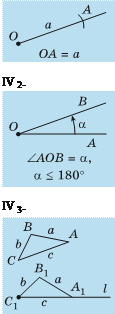 Трикутник називається тупокутним , прямокутним або гострокутним , якщо його найбільший внутрішній кут відповідно більший, дорівнює або менший за 90. Трикутник називається рівнобедреним , якщо в нього дві сторони рівні (бічні сторони). Основою рівнобедреного трикутника є та сторона, яка не дорівнює жодній з інших двох рівних сторін. Трикутник, усі сторони якого рівні, називається рівностороннім , або правильним. Співвідношення між сторонами і кутами трикутника : – проти більшої сторони лежить більший кут, і навпаки; – проти рівних сторін лежать рівні кути; – теорема синусів: – якої сторони трикутника дорівнює сумі квадратів двох інших сторін без подвоєного добутку цих сторін на косинус кута між ними). Трикутник можна визначити будь-якою трійкою таких основних елементів: або двома сторонами і кутом між ними, або однією стороною і двома кутами, або трьома сторонами. Наприклад, ABC зі сторонами а , b , c можна задати так: 1) a , b i C ; b , c i A ; a , c i B ; 2) a , B i C ; b , A i C ; c , A i B ; 3) a , b і c . Співвідношення між внутрішніми і зовнішніми кутами трикутника : будь-який зовнішній кут трикутника дорівнює сумі двох внутрішніх кутів, не суміжних з ним. З трьох відрізків можна утворити трикутник тоді і тільки тоді, коли будь-яка його сторона більша за суму і менша за різницю двох інших його сторін. У будь-якому трикутнику можна провести три медіани, три бісектриси і три висоти.