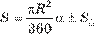 – радіус кола, а довжину дуги кола – за формулою: , де – градусна міра відповідного центрального кута. Площа круга: