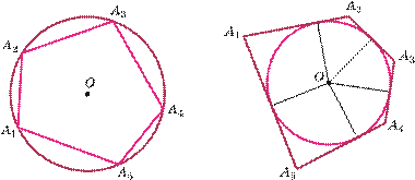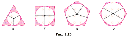 Якщо коло поділити на n рівних частин і через точки поділу провести дотичні до кола, то відрізки цих дотичних утворять правильний n -кутник, описаний навколо кола (рис. 1.15).