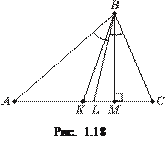 трикутника перетинаються в одній точці, яка лежить усередині трикутника і є центром вписаного в трикутник кола. Бісектриса ділить протилежну сторону на частини, пропорційні прилеглим до неї сторонам (рис. 1.18; BL –
