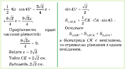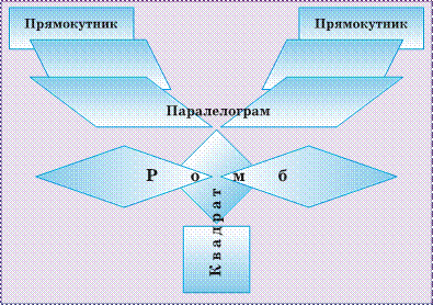 Ця задача є опорною , оскільки на такій ідеї будується багато задач і для паралелограма, і для трапеції. У цих фігурах бісектриса кута відтинає завжди рівнобедрений трикутник. Зауважимо , що скорочене позначення кутів, у вигляді 1 , 2 , …, спрощує записи та економить час, тому в таких випадках ним користуватися зручніше. Як бачимо, у процесі розв’язування задачі 1 використовуються лише відомі геометричні твердження та проводяться відповідні обчислення. Причому для кожної геометричної задачі такі міркування свої. Суть аналітичного методу полягає в тому, що, виходячи з вимоги (висновку) твердження (теореми чи задачі) і спираючись на відомі твердження, будуємо ланцюг логічних міркувань, який показує, що вимога є наслідком умови. Наведемо приклад.