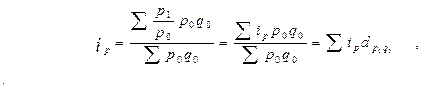 где q 1 p 1 – стоимость продаж отдельных товаров и услуг в отчетном периоде, нетрудно представить, что этот индекс тождествен агрегатному и отличается от него лишь формой. Агрегатные индексы дают общую оценку динамики физического объема потребления населения, не выделяя значение индивидуальных индексов объема и не показывая их роли в общем индексе. Международную практика использует базисно-взвешенный индекс цен Ласпейреса, предложенный им в 1871 г. В агрегатной форме он имеет вид: В этом индексе в отличие от текуще-взвешенного структура потребительских расходов населения по товарам, или уровень потребления в виде потребительской корзины, остается прежней – базисной, что позволяет оценить динамику потребительских цен в чистом виде. Частая сменяемость товаров и их моделей в потребительском наборе вынуждает к использованию цепного метода в индексных расчетах. Нужна регистрация "живых" цен продаж. При замене товара на эквивалентный цены на него проходят двойную регистрацию по старому и новому товарам, что приводит к цепному методу. Двойная регистрация при перемене товара обеспечивает возможность закончить старое звено и начать новое, предохраняя цепь динамики от разрыва. Звено вычисляется делением последующей цены нового звена на предыдущую цену старого. Фишер по-своему решил проблему различий в структуре потребительских расходов населения отчетного и базисного периодов, оказывающих существенное влияние на значение текуще- и базисно-взвешенных индексов потребительских цен. Он предложил "идеальный" индекс цен, вошедший в историю под его именем – индекс Фишера. Это средний геометрический индекс из индексов цен Пааше и Ласпейреса: Очевидно, этот индекс лишен реального экономического содержания и представляет собой чисто математическую модель. Расчет его в нашем примере возможен лишь в тех случаях, когда структура потребительских расходов населения за два сравниваемых периода претерпела принципиальные, качественные изменения, что делает невозможным использование в качестве весов ни текущую, ни базисную структуры расходов. В практике международной статистики цен индекс Фишера применяется при оценке динамики цен внешней торговли и в двусторонних межгосударственных сопоставлениях. Сводный индекс потребительских цен нередко продолжают называть также индексом стоимости жизни. В этом качестве он и появился, так официально назывался в международной статистике. Действительно, индекс показывает, насколько изменились расходы населения на приобретение им фиксированного набора благ и услуг (потребительские расходы, или стоимость жизни) в отчетном периоде по сравнению с базисным при неизменном, базисном, уровне потребления. При таком подходе изменения базисно-взвешенного индекса цен могут вызываться только изменениями цен, но не переменами в структуре потребления в результате изменения доходов населения или появления новых товаров. Индекс потребительских цен нередко фигурирует в сочетании с индексом-дефлятором, являющимся относительно новым показателем для отечественной статистики, но широко применяемым в других странах. Дефлятор – тот же индекс цен, но он шире, чем ИПЦ, поскольку включает не только цены потребительских товаров и услуг, но также цены инвестиционных товаров и услуг, т. е. оптовые цены. Следовате