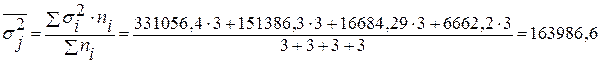 Вычислим средние арифметические величины и внутригрупповые дисперсии по каждой группе. Внутригрупповые дисперсии по каждой группе: