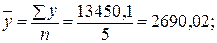 Средние значения потребительских расходов городского населения превышает средние значения потребительских расходов всего населения на всем изучаемом периоде. Максимальное превышение потребительских расходов городского населения составляет 25,95% в 200 5году, минимальное – 17,4 в 2010 году. На промежутке 2002 - 2009 года идет стабильный рост потребительских расходов городского населения, а затем идет его снижение. Потребительские расходы сельского населения снижаются на промежутке 2002 – 2007 года, в дальнейшем с 2007 по 2010 год расходы растут. 2.3. Изучение межрегиональной вариации потребительских расходовИзучение межрегиональной вариации потребительских расходов проведем в виде сравнения объемов расходов по различным регионам РФ. В качестве таких регионов было выбрано четыре: Московская область, Республика Башкортостан, Приморский край, Республика Ингушетия. Проведем анализ зависимости потребительских от месторасположения региона, т.е. анализ того, как зависит объем выданных кредитов от региона. Для этого рассчитаем межгрупповую, внутригрупповую дисперсии по регионам и общую дисперсию по правилу сложения дисперсий. Составим таблицу для проведения расчетов (таблица 5). Таблица 5 Исходные данные по потребительским расходам по четырем регионам