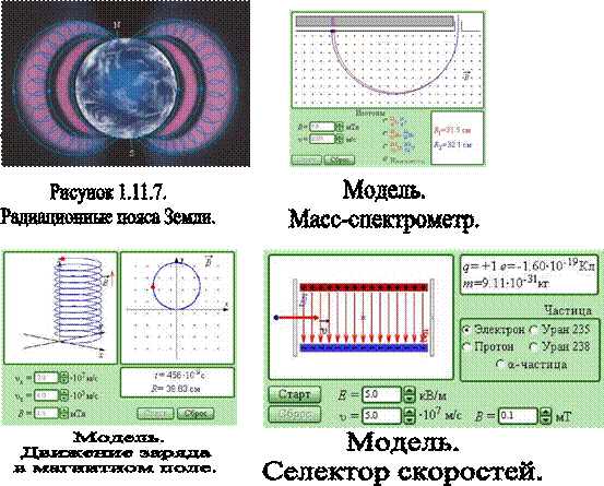 Современные масс–спектрометры позволяют измерять массы заряженных частиц с точностью выше 10–4. Если скорость частицы имеет составляющую вдоль направления магнитного поля, то такая частица будет двигаться в однородном магнитном поле по спирали. При этом радиус спирали R зависит от модуля перпендикулярной магнитному полю составляющей υ┴ вектора, зха шаг спирали p – от модуля продольной составляющей υ|| (рис. 1.11.5). Таким образом, траектория заряженной частицы как бы навивается линии магнитной индукции. Это явление в технике для магнитной термоизоляции плазмы, то есть полностью ионизированного газа при температуре порядка 106 K. Вещество в таком состоянии получают в установках типа "Токамак" при изучении управляемых термоядерных реакций. Плазма не должна