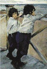 Я думаю, этот поступок и вопрос бы ли вызваны вот чем: бродя по комнатам, малютка забрался ко мне и стал рас сматривать меня, спящего. В это время я во сне, вероятно, пожевал губами. Всё, что касалось жевания вообще и пищи в частности, очень интересовало малютку. Чтобы привести меня в состояние бодр ствования, малютка не нашёл другого способа, как сходить за палкой, треснуть меня по голове и задать единственный вопрос, который его интересовал: — Что ты лопаешь? Можно ли не любить детей? (По А. Аверченко) В. Серов. Дети